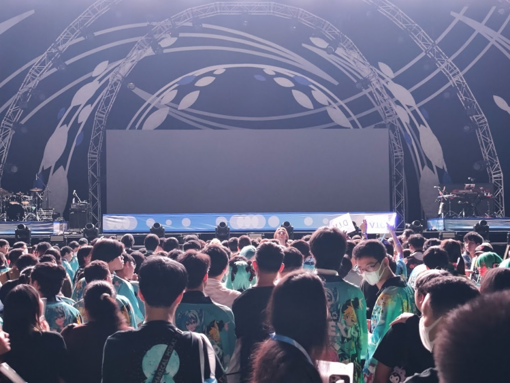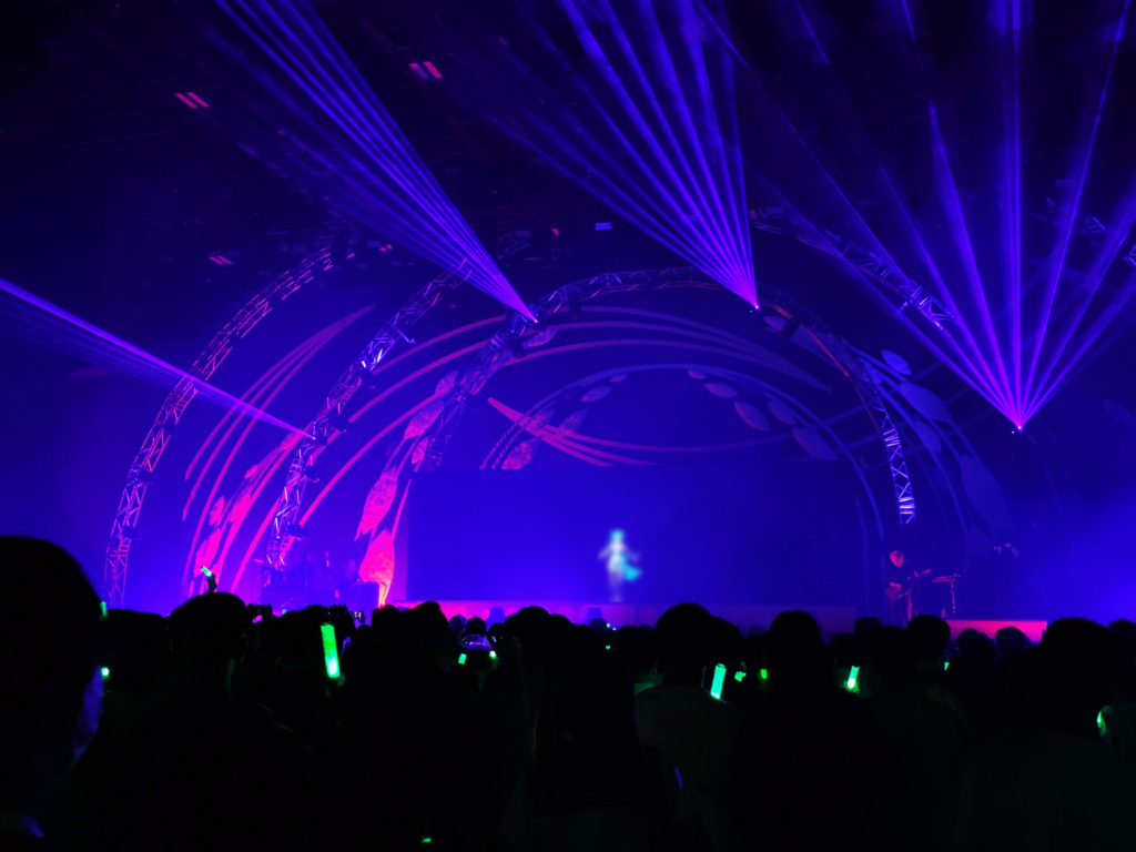 これら3点の条件がそろったとき、スモークによる空間色とレーザー、ミクさんをはじめとしたキャラクターのみが目に入り、「存在感」が阻害される要素が排除されていたのだった。