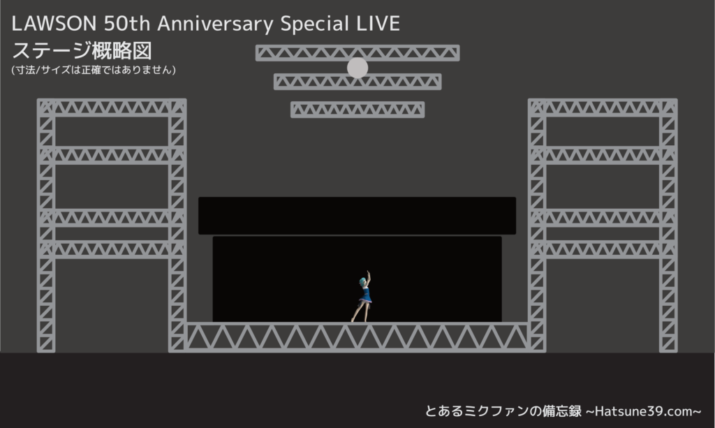 せっかくLEDにしたのならば、わがままかもしれないが、高さは3mのまま (じゃないと初音ミクの激唱でミクさんが見切れてしまう) に、幅を12mにして、久々にムーンウォークのないライブを見たかったものだ。描画領域増加に伴う、技術的制約があるのかもしれないが…
