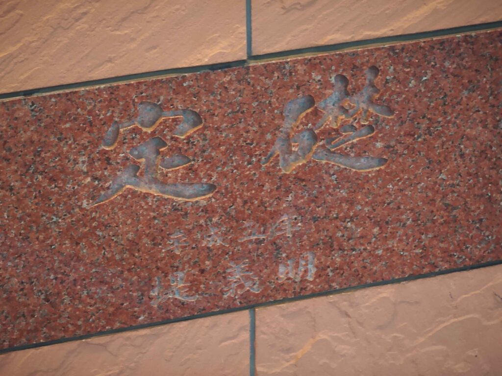 定礎は正面玄関に向かって左側に設けられている。刻印内容は竣工年 (平成十七年) のみである。